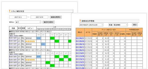 「スタッフ確定状況」で事前にスタッフの人数が確認できるので、業務の計画にも役立ちます。
