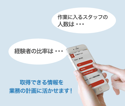 ご依頼の作業に入るスタッフの確定状況が前もって確認できるので、業務の計画に役立ちます。
