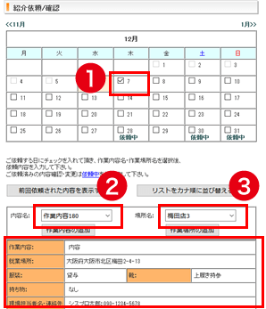 1. ご依頼する日にチェックを入れてください。