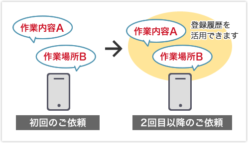 2回目以降のご依頼は、登録済みの作業内容、作業場所を利用して、簡単に紹介申込をすることができます。